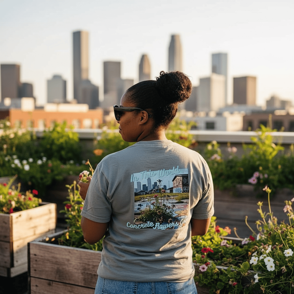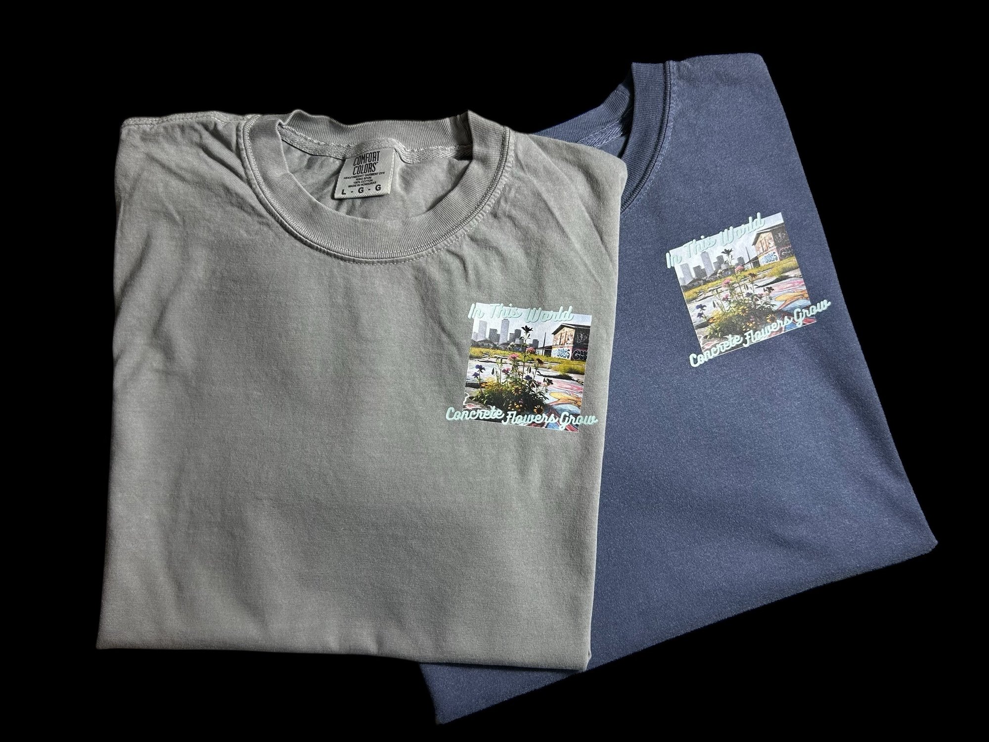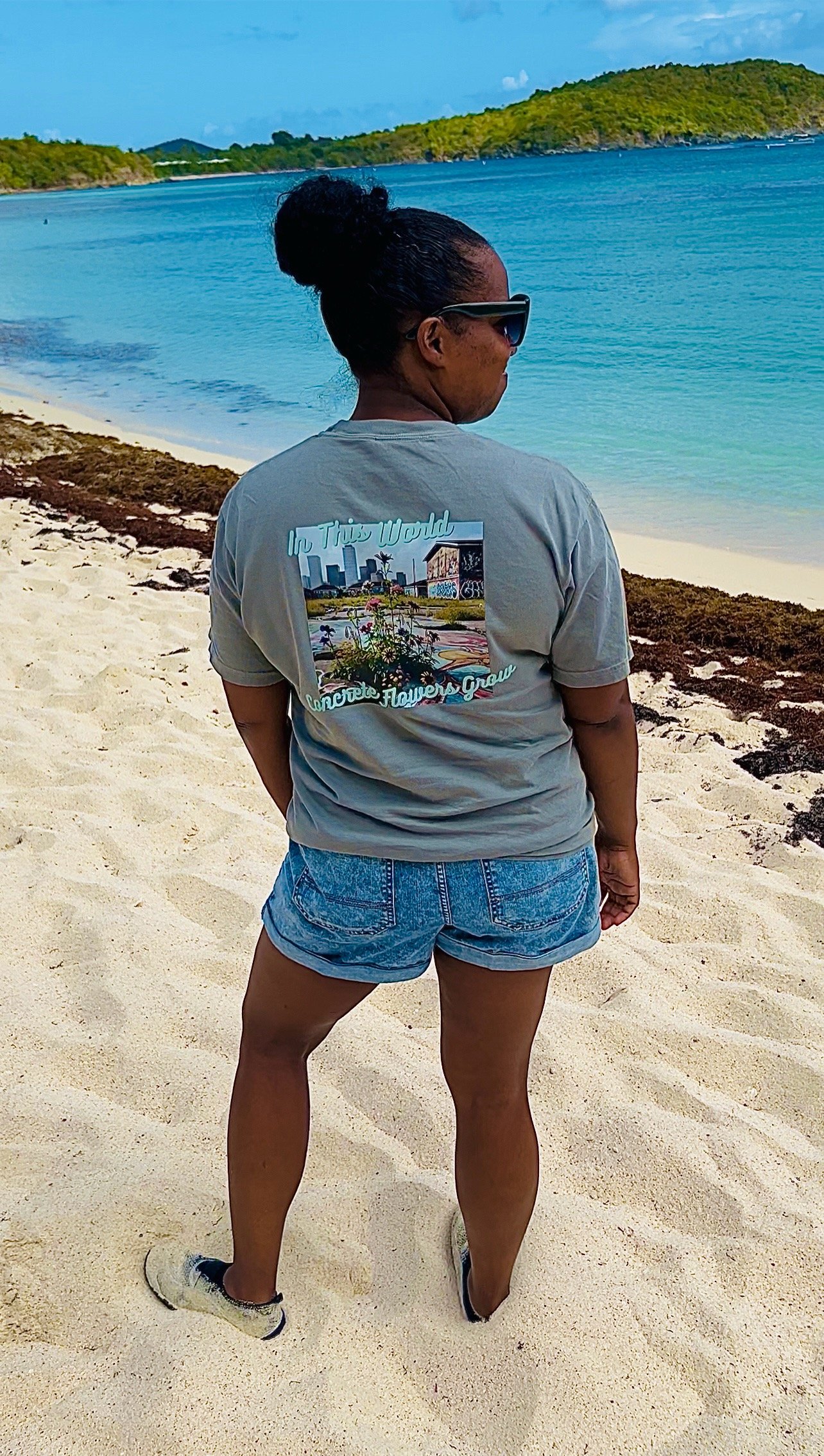**Keywords:** graphic tee, streetwear shirt, urban t-shirt, inspirational shirt, positive message tee, unisex graphic shirt, concrete flowers grow shirt, aesthetic graphic tee, resilience shirt, gift for him, gift for her.